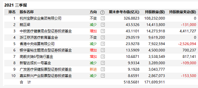 值得注意的是,“公募一哥”张坤管理的易方达中小盘基金退出十大流通股东之列。早在2021年二季度末,易方达优质精选对通策医疗持仓降至580万股(2021年一季度末为700万股)。
