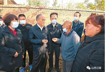 10月17日,省委书记林武在霍州市师庄乡冯南垣村灾害中农房坍塌现场,了解群众安置情况及重建规划。山西日报记者李联军摄