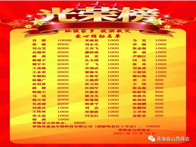 青海省山西商会(中国晋商俱乐部联合发起机构)会长肖婷、常务副会长刘占宝、刘俊庆、党支部书记岳晓军、秘书长郝勇等率先垂范,积极响应商会号召,带头捐款,在他们的带动下商会会员和在青老乡们积极参与为灾区捐款活动,社会各界人士也参与了商会组织的捐款活动。此次共有61人捐款,共计捐款84200元,以此表达异地晋商对家乡的同情和慰问之情。此款已分别汇至受灾比较严重的新絳县、蒲县、榆社县,并报送山西省工商联。