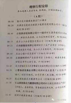 第一站来到牧原农牧有限公司十一场调研生猪养殖项目。150万头科学化、规模化的养猪场让大家大开眼界,见识了现代化科学养猪的新技术、新项目、新路径;第二站来到尚誉服装有限公司调研手工业产业项目。规模化的大型服装厂在安置村民就业、带动乡村致富方面给了观摩团员深刻的启发和思考;第三站在农发村调研产业扶贫项目,这个村的种、养、销一条龙乡村振兴模式,具有很强的示范效应,特别是一头母牛三年可产五头小牛,一头小牛价格好几千元,村民给陈旭忠书记讲着养殖经、算着致富帐,满口高兴地合不拢嘴给一行人留下了难忘印象;第四站在晋鲁诺佳有限公司调研脱水蔬菜产业发展。他们以公司+农户+基地+营销的致富经,深深地打动了观摩团员,特别是在这里见到来自山东省菏泽市牡丹区的投资企业家、山东老乡穆玉梅董事长时,大家更有说不完的话,道不完的情,交流不完的心得和感受;第五站是在山西旭泰北方酿酒有限公司调研白酒及黄酒生产项目。大家参观学习后收获满满,感想连连,特别是高珂珂副会长感慨道,“我的物业公司也叫‘旭泰’,我们俩个企业家竟然不谋而合,看来我的公司发展成集团公司不仅仅是皆有可能,我看是指日可待”!