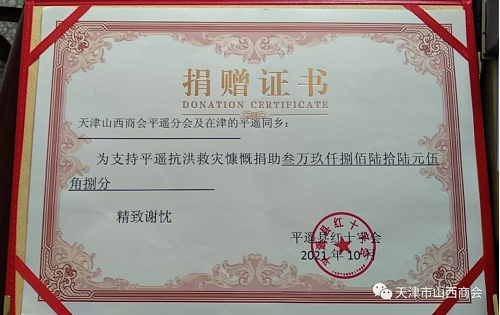 2021年10月,山西省各地遭受了不同程度的洪涝灾害,天津山西商会(中国晋商俱乐部联合发起机构)发出号召,让企业家们心系灾区,以各经济联络部为单位,采取各种形式为灾区为家乡捐款捐物,支援山西防汛救灾。平遥分会会长率先响应号召,在平遥经济联络部部长张法彪及领导班子的组织带领下,企业家们积极捐款,截止到10月13晚8点截止,此次活动共有111人参与,筹集善款39866.58元!