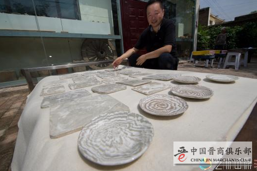 太原市美术馆馆长王鼎是个地道的“瓷迷”,从2008年在孟家井村发现金元时期的绞胎瓷碎片后,便以一年30趟的频率往返于市区和孟家井村之间。8年时间,王鼎收集材料、调研、收集瓷片标本、了解制作工艺。2013年,孟家井绞胎瓷制作技术被列为市级非物质文化遗产保护项目。
