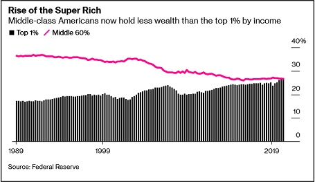 美联储最新数据显示,美国前1%的超级富人拥有财富超过中产阶级总和