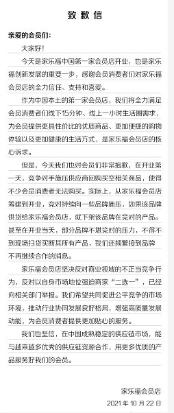 道歉信发出后,引起网络热议,家乐福会员店“声讨”的竞争对手究竟是谁?