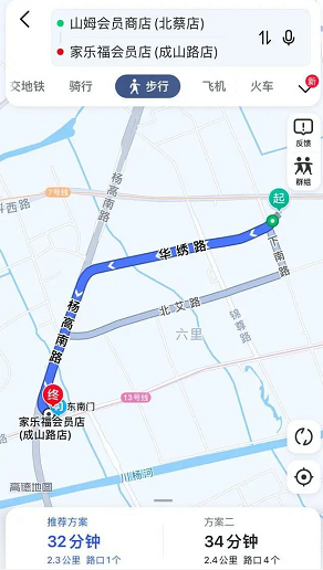 记者注意到,在家乐福会员店(上海成山路店)附近就有一家山姆会员店(北蔡店),两者的步行距离不到3公里。