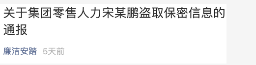 安踏发布的通报显示,集团零售人力巡查发现,人力高级专员宋某鹏有盗用他人计算机权限,秘密窃取公司保密信息的行为。经集团流程与信息管理部、法务部、审计监察部介入调查后发现,宋某鹏趁他人不备,秘密利用他人权限为自己开通网盘权限,将集团零售体系人力的员工花名册、高管信息、各类总结汇报PPT、零售培训课件等保密电子资料下载至个人硬盘,计划随其本人离职后带走,总容量约为95G,给公司造成极大的泄密风险。