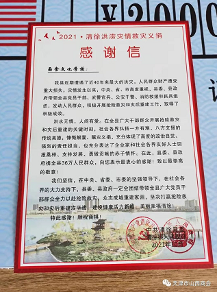 许大为董事长旗下在山西的企业向清徐县捐款20万元。