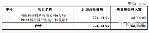 资料显示,此次增发是同德化工自首发上市以来第二次定增募资,亦是规模最大的一笔融资,不过此次所募资金并非既有民爆主业,而是全部投向全资子公司同德科创材料有限公司 6 万吨/年 PBAT 新材料产业链一体化项目,不过此举并不意外。