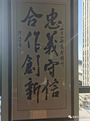 进入山东省山西商会所在地,首先映入眼帘的是墙壁上晋商精神。习近平总书记视察山西时,高度评价晋商精神“山西自古就有重商文化传统,形成了诚实守信,开拓进取、和衷共济、务实经营、经世济民的晋商精神”
