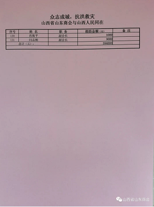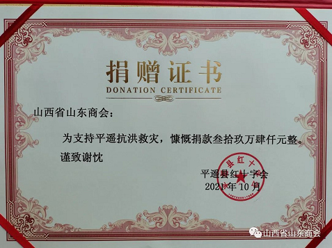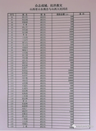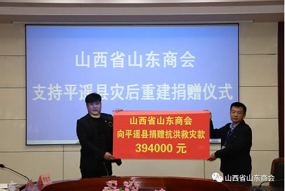 “爱心不分大小,爱心不论次数,爱心要长长久久,爱心要洋洋洒洒,温暖三晋大地,彰显鲁商情怀”!伊会长最后拍板,办公室立即发出倡议书,商会上上下下,立刻行动。短短三天时间,商会收到会长、副会长和办公室全体员工的爱心捐款39.4万元,同时决定把这笔善款定向捐赠平遥县人民政府,为支持平遥县灾后重建助一臂之力。