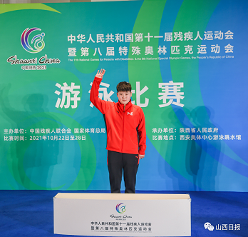 当日,游泳赛场上喜讯不断,山西省选手郑杰桐斩获女子SB12级200米个人混合泳金牌。田径赛场上,山西省选手张佳玉、冯亚平分获女子标枪F56级银牌、铜牌;山西省选手王英喆与福建、浙江、天津选手联合组队,在男子4×400米接力听障组决赛中获得铜牌。同一天,特奥会赛场上的山西选手也屡创佳绩,再获4金11银2铜。