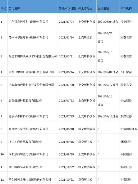 IPO暂缓审议企业一览: