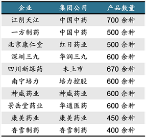 目前国家级6家试点企业由于深耕市场多年,还是占据绝大市场份额,处于市场主导地位。中国中药是中药配方颗粒行业的龙头企业。6家国家级试点企业中,天江制药及一方制药均属于中国中药旗下企业;省级试点企业中,承天金岭药业、中联药业、双兰星制药、三强现代中药司、天江药业等企业属于中国中药的子公司或持有股份。红日(康仁堂)、新绿色、华润三九则稳居第二阵营,在省级试点中,神威药业享受河北的医保政策而快速发展壮大,中药配方颗粒逐渐成为其核心支柱。