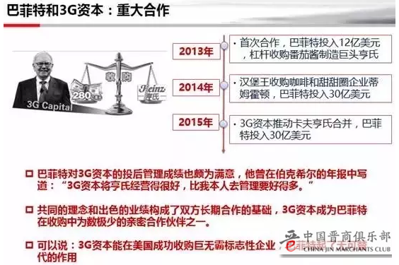 而且,他们不但积极遍访名师,也促进各界杰出人士交流,为所有人营造学习和合作的契机。雷曼在上世纪90年代任吉列公司董事时,和同为董事的巴菲特相识,从此互相师法,并在2008年英博收购百威案开始了长期的合作,3G资本在美国食品业的重大投资都有巴菲特坚定的财务支持。