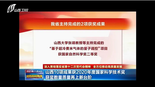 山西大学张靖教授等主持完成的“基于超冷费米气体的量子调控”项目获国家自然科学奖二等奖。