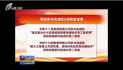 中铁十七局集团有限公司参与完成的“重大工程黄土灾害机理、感知识别及防控关键技术”项目获国家科技进步奖二等奖。