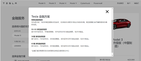 11月4日,记者在特斯拉中国官网注意到,11月1日上线的融资租赁方案中,“0首付”选项已经取消,最低首付调整为10%。