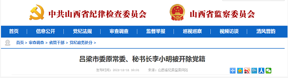 日前,经山西省委批准,省纪委监委对吕梁市委原常委、秘书长李小明严重违纪违法问题进行了立案审查调查。