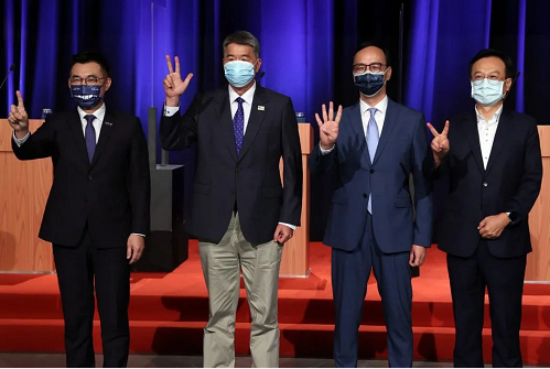 从左至右依序为党主席候选人江启臣、张亚中、朱立伦、卓伯源。(资料图/台湾《联合报》)