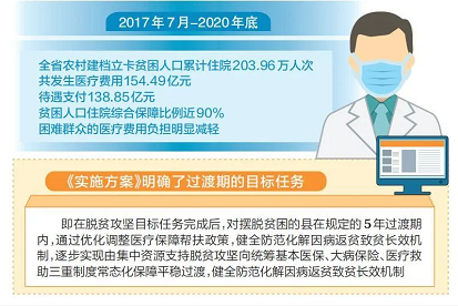 《实施方案》对脱贫攻坚期我省阶段性医疗保障帮扶政策进行了优化完善: