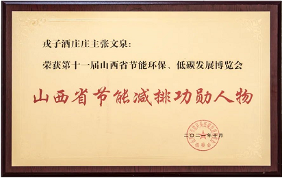 2021年10月29日,第十一届山西省节能环保、低碳发展博览会在山西省展览馆开幕,戎子酒庄庄主张文泉荣获“山西省节能减排功勋人物”,戎子酒庄荣获“战略合作单位”。