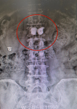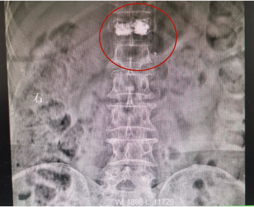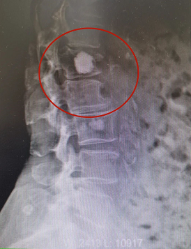 患者孙某某,女,83岁,早上晨练后摔伤出现腰背部疼痛,起立行走困难,在家卧床休息7小时后疼痛未缓解,来院门诊行腰椎X光片检查后提示:腰L1椎体压缩性骨折,告知患者及其家属诊疗方案后,患者及其家属要求手术治疗。入院第二天予患者行腰L1骨水泥椎体成形术,术后当天患者自觉胸腰背部疼痛明显缓解,术后第二天患者下床自行活动良好。