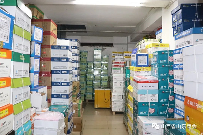 上午11点多,一行人又来到苗君华副会长位于南内环东街智慧产业园的又一处仓储中心,更为震撼的是——这个仓库4000多平米,库存达8000多万,多半为复印纸。听苗副会长讲,她所经营的办公用品(特别是复印纸)占山西省市场的70%,每年的销售额达5亿元,每年进进出出货物搬运量超过15万吨!想想看,这是怎样的“搬运工”啊!