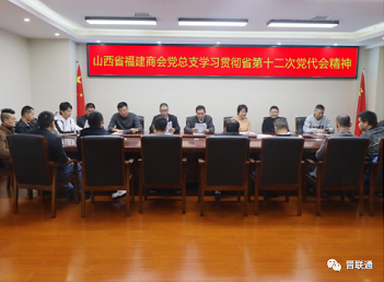根据省工商联行业党委关于认真学习贯彻落实山西省第十二次党代会精神的工作部署。11月13日山西省福建商会党总支组织所属四个党支部负责人等共同传达学习省十二次党代会精神,会议由总支书记陈德水主持,总支副书记黄玉美传达11月4日在省工商联行业党委召开的关于深入学习贯彻山西省第十二次党代会精神的工作部署。