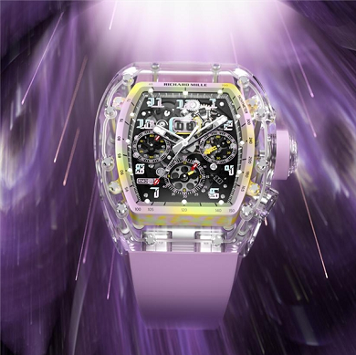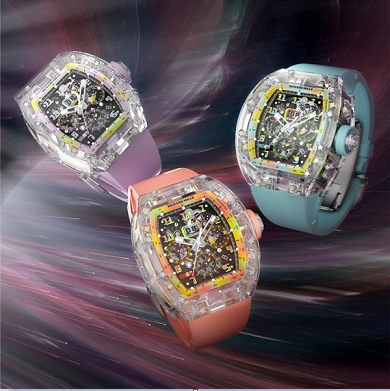 AET REMOULD再次启动“A11 时光机”旅程,我们迎来了三种新配色:明焰红,流光紫,皓月蓝。每一种配色都让人感觉是在乘坐着一部连接不同时空的时光机,这倘佯在时空浪花中的旅程像是在经历一场期待已久的冒险。腕表艺术本身就是在探险,时光机背后的灵感源自于AET REMOULD沿着时间留下的梭影,在奇幻的想像中自由漫步,寻找创意。我们在RM 011的基础上重新设计,通过时间与空间叠加呈现,相互交织的迷离感,开启五彩缤纷的视觉冒险。