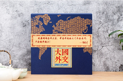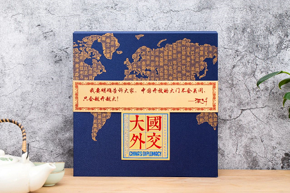 底部的大国外交四个字选用了中国的代表色:红色,并进行凹凸压印,不仅摸上去有质感,还格外吸睛。