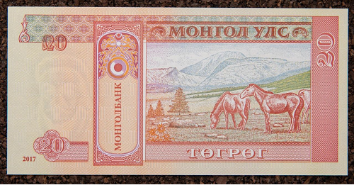 比如这张蒙古国20图格里克纸钞,正面额人物是蒙古人民共和国的领导人,也是蒙古人民革命党创始人之一:苏赫巴托尔。