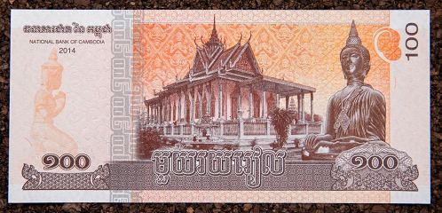 这张100瑞尔的柬埔寨纸币的图案同样也浓缩了国家文化的缩影。
