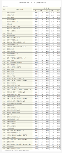 先来看看这份分职业中类企业从业人员工资价位(2020年)。
