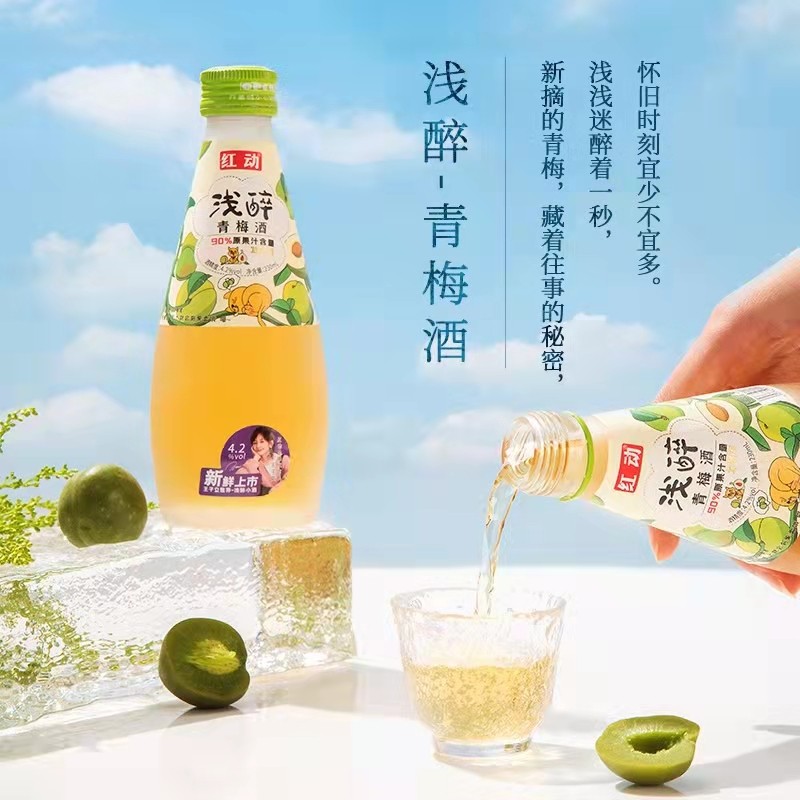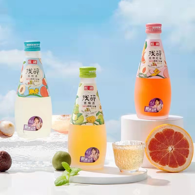 红动酒业集团旗下浅醉系列果酒,作为一款发酵酒,每瓶果汁含量达到90%,是名副其实的“果酒”。其配料也很干净,除去基本的调味白砂糖之外,无其他物质,完整的表现出了一个发酵酒该有的模样,让消费者能直接感受到红动酒业集团原真本味的产品。
