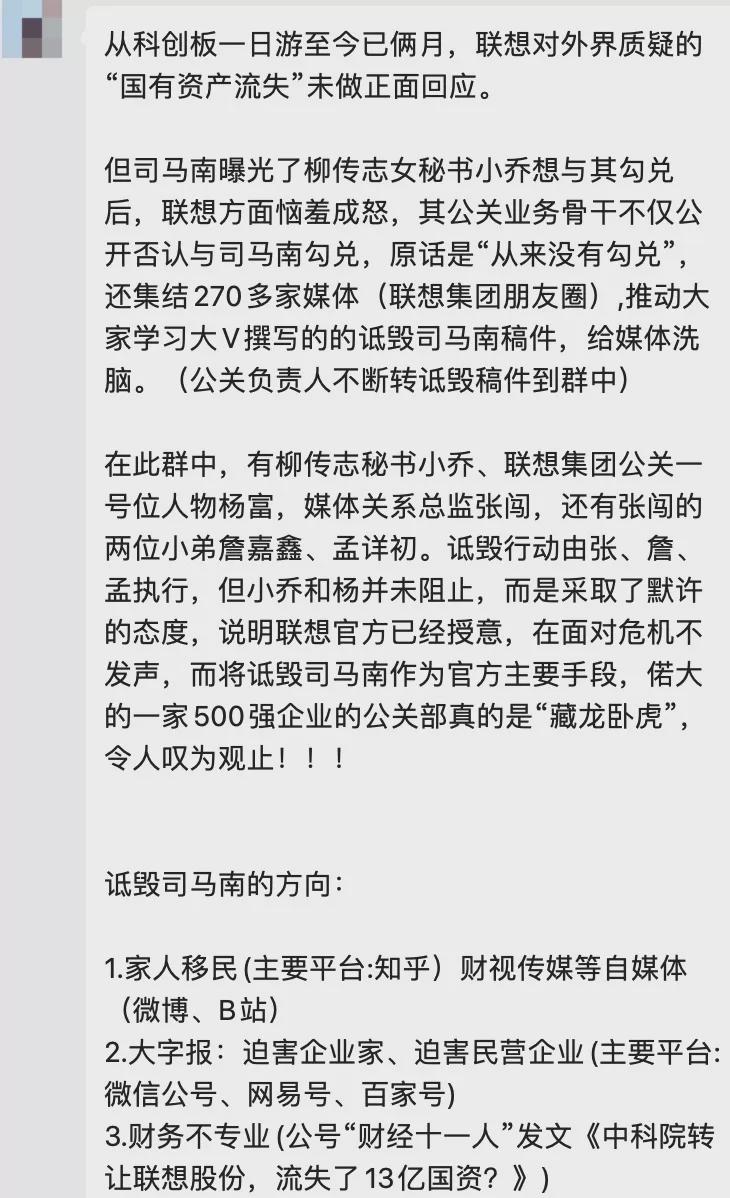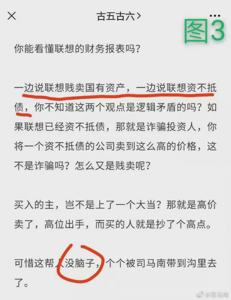 司马南的丑臭能够反过来证明联想的那些问题不存在吗?能够弥平涉嫌巨额国有资产流失历史瘢痕,叫历史忘记叫众人忘记吗?