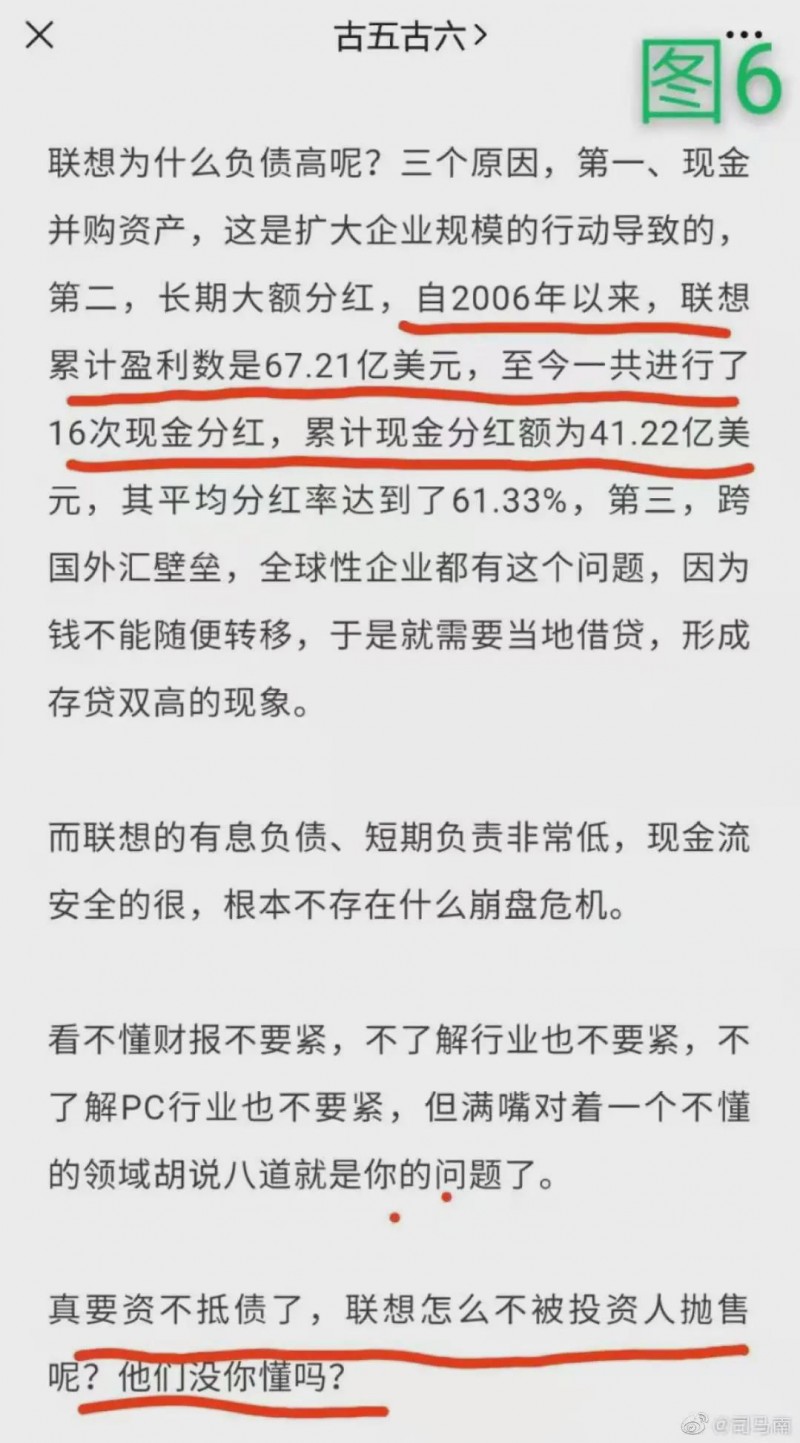 三. 图3更有意思了,“贱卖国有资产”说的是当年,“资不抵债”说的是现在。这两条都有大量的事实,主要是联想自己提供的证据来证明。如果不是企业被高管的天价年薪和分红给掏空了,他们现在至于扣除无形资产后严重资不抵债吗?