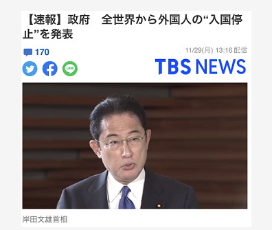 TBS:日本政府发表消息,“停止”全世界的海外人士入境日本
