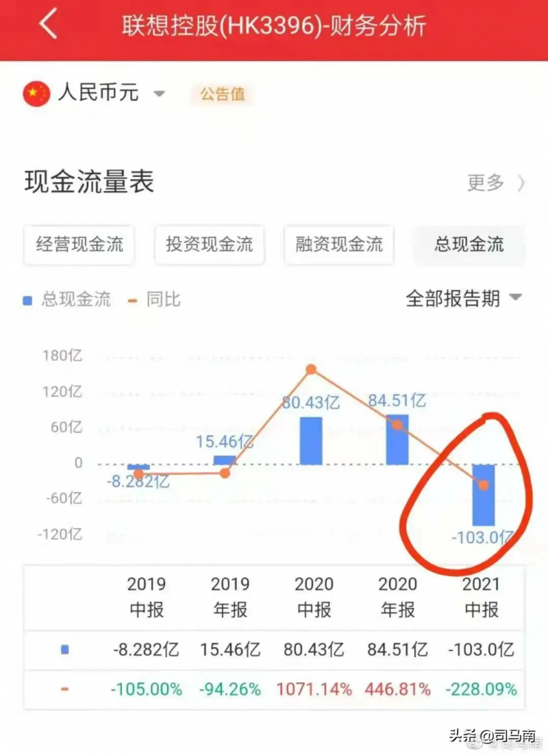 4. 秦先生拍着胸脯打保票“联想集团目前的现金流非常强劲”,可是他对联想控股2021年中报中“总现金流-103亿元”的数字视若罔闻;