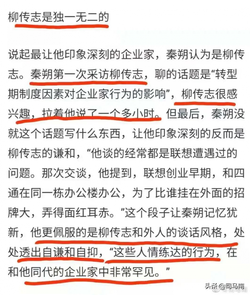 7. 柳八爷退休时,秦朔先生深情地撰文:“每一片绿叶,都不会忘记根的哺育。”若非对柳八爷知之甚深,何以感慨“柳传志是独一无二的”?