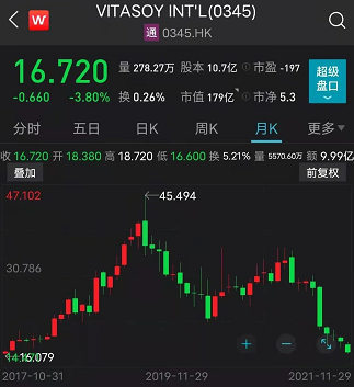 维他奶声誉一落千丈,大量消费者自发抵制维他奶集团的产品,全国多地商户和电商开始下架维他奶产品,向供应商退货。受此影响,维他奶国际的股价持续下跌,7-8月累计下跌超30%。虽然维他奶产品后来在中国内地市场恢复上架,但其股价继续低迷。相比其年初最高点36.60港元的股价,目前已腰斩过半。