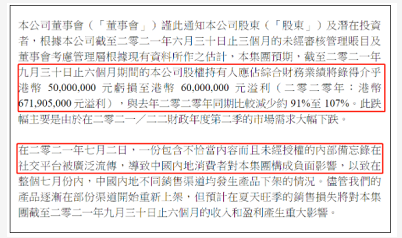 维他奶国际25日发布了的2022财年中报,报告期内(2021年4月1日-9月30日)维他奶国际实现收入36.04亿港元,较上年同期下降18.28%;实现净利润仅3280.4万港元,较上年同期大跌95%。