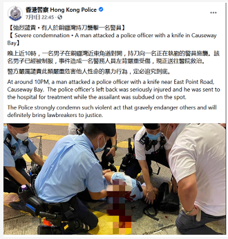 遇袭警员伤口深约10厘米,伤及肺部 社交媒体截图,下同