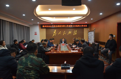 11月29日,霍州市召开2021年符合政府安排工作退役士兵选岗工作会议。政府副市长张发宁出席会议,市纪委监委、编办、人社局、财政局、医保局及5家接收单位相关负责人参加了会议。