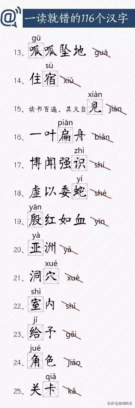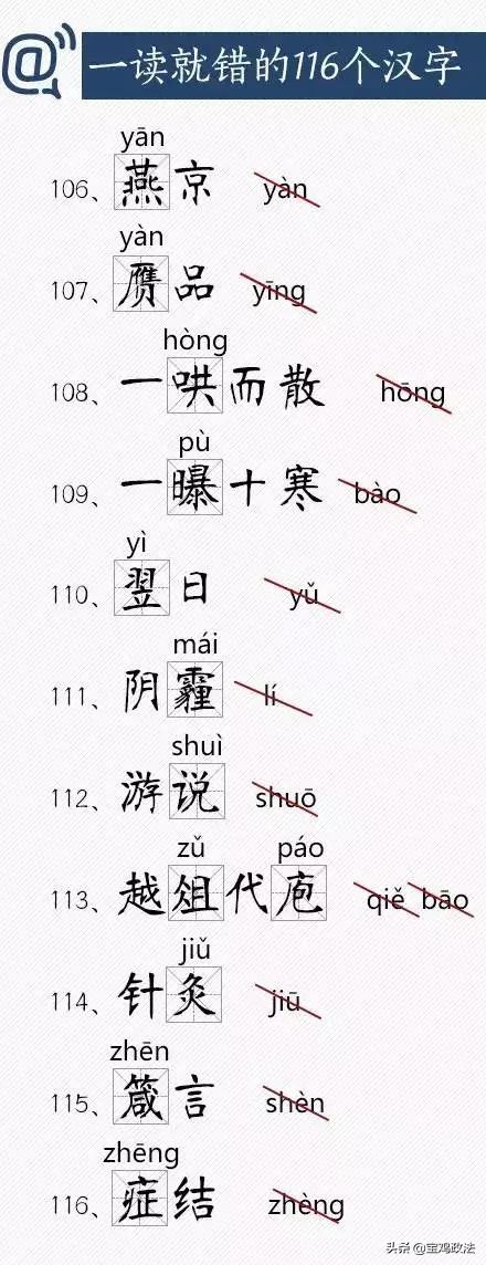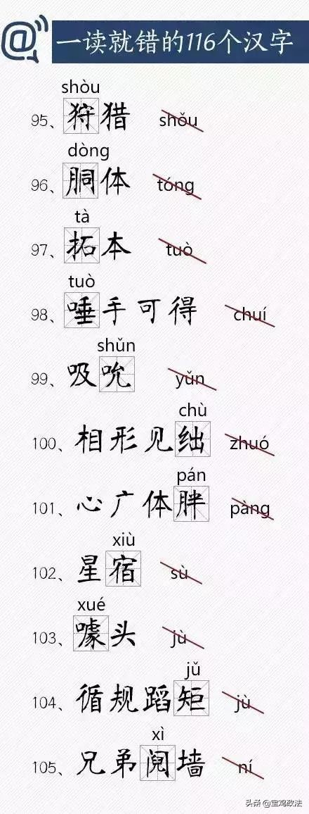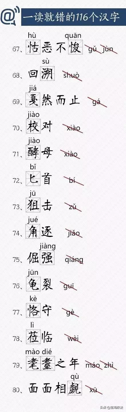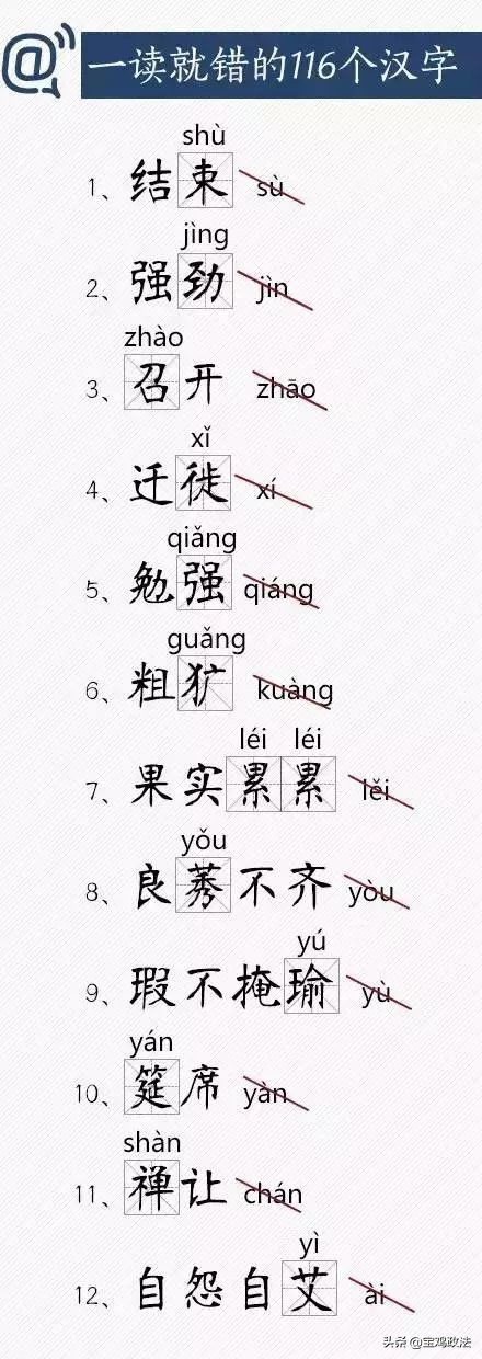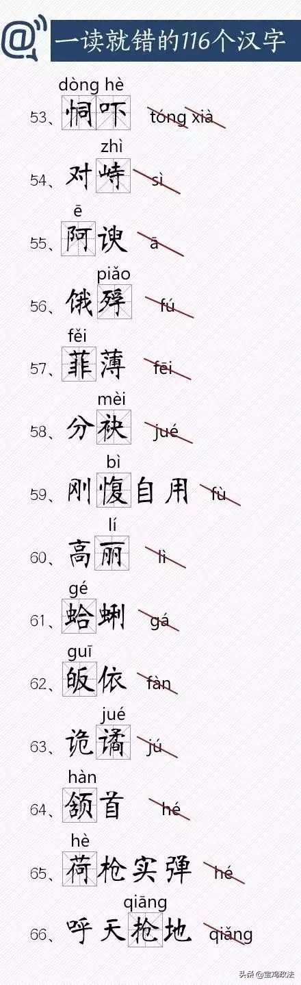 核心提示:中华文化博大精深,有些字,你虽然认识,但却可能读不对。今天小编带来一读就错的116个汉字,老师、家长、同学们,快来挑战一下你能读对多少!