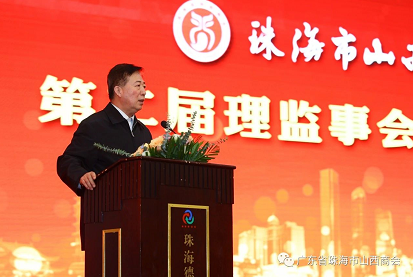 陈德敬部长对商会新一届理监事会光荣就职表示热烈的祝贺。他说,珠海市山西商会发展五年以来,闫国军会长带领理事会肩负重任、甘于奉献、开拓创新、推动发展、牵线搭桥、服务家乡。上一届理事会坚持政治建会,团结立会,服务兴会,改革强会,带领乡贤团结奋进,创业创新,回报社会,为珠海与山西两地经济社会发展贡献智慧和力量。最后表示,商会要始终坚持中国共产党的领导,引领民营企业家感党恩,听党话,跟党走,以晋商文化为纽带,弘扬晋商精神,广泛凝聚在珠晋商企业家,搭建晋商大平台,再创商会新辉煌。