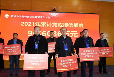 中国银行、山西银行、交通银行、兴业银行、浦发银行5家银行和晋城市融资担保有限公司已经与联盟达成长期的战略合作关系,并对全市“专精特新”企业提供资金支持累计达到9.1811亿元,累计完成授信额度9.6086亿元。
