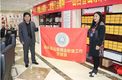 轮值十二组代表、副组长、副会长刘同花从邓朝训副组长手中接过商会轮值工作旗帜,并作表态发言。她说,“我从1998年来到山西,一路打拼,苦过累过也收获过,走进商会、找到娘家是我这些年来最高兴的事。今天,我代表十二组接过轮值旗帜,一定把前面十一个小组的好传统、好作风、好做法传承下去,一定和小组成员精心筹划本组工作,以优异的成绩跑好牛年最后一棒,希望大家多多支持和帮助”!