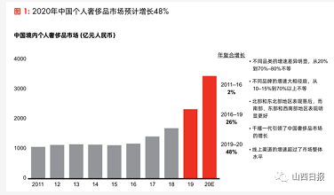 一项数据显示,2011年到2020年中国国内奢侈品销售额一路上升,在2020全年实现约48%的增长,达到近3460亿元人民币。