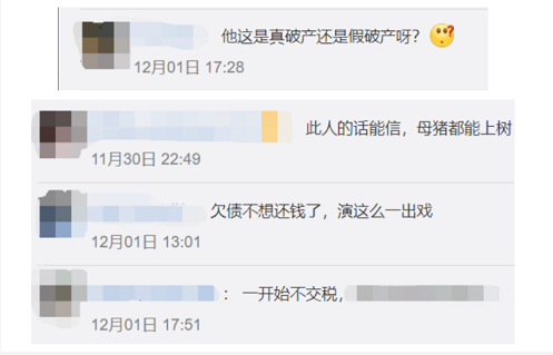 还有网友认为,龚文祥自称破产,只是为了营销炒作。