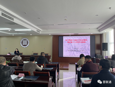 11月29日上午,长治市潞州区工商联召开党组(扩大)会议,传达学习党的十九届六中全会和省市区党代会精神。区委统战部副部长、工商联党组书记赵晓红主持会议并讲话。